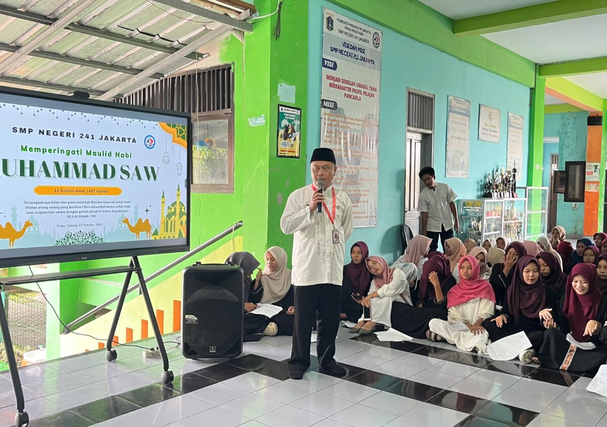 Dalam rangka memperingati kelahiran Nabi Muhammad SAW, SMP Negeri 241 Jakarta menyelenggarakan kegiatan Maulid Nabi Muhammad SAW sebagai bagian dari pembiasaan religius dan pembinaan karakter siswa. Acara Maulid Nabi dilaksanakan dengan penuh khidmat dan melibatkan seluruh warga sekolah. Melalui kegiatan Maulid Nabi Muhammad SAW, diharapkan seluruh peserta didik SMPN 241 Jakarta dapat mengambil hikmah, meneladani akhlak mulia Nabi, serta mengamalkannya dalam kehidupan sehari-hari.